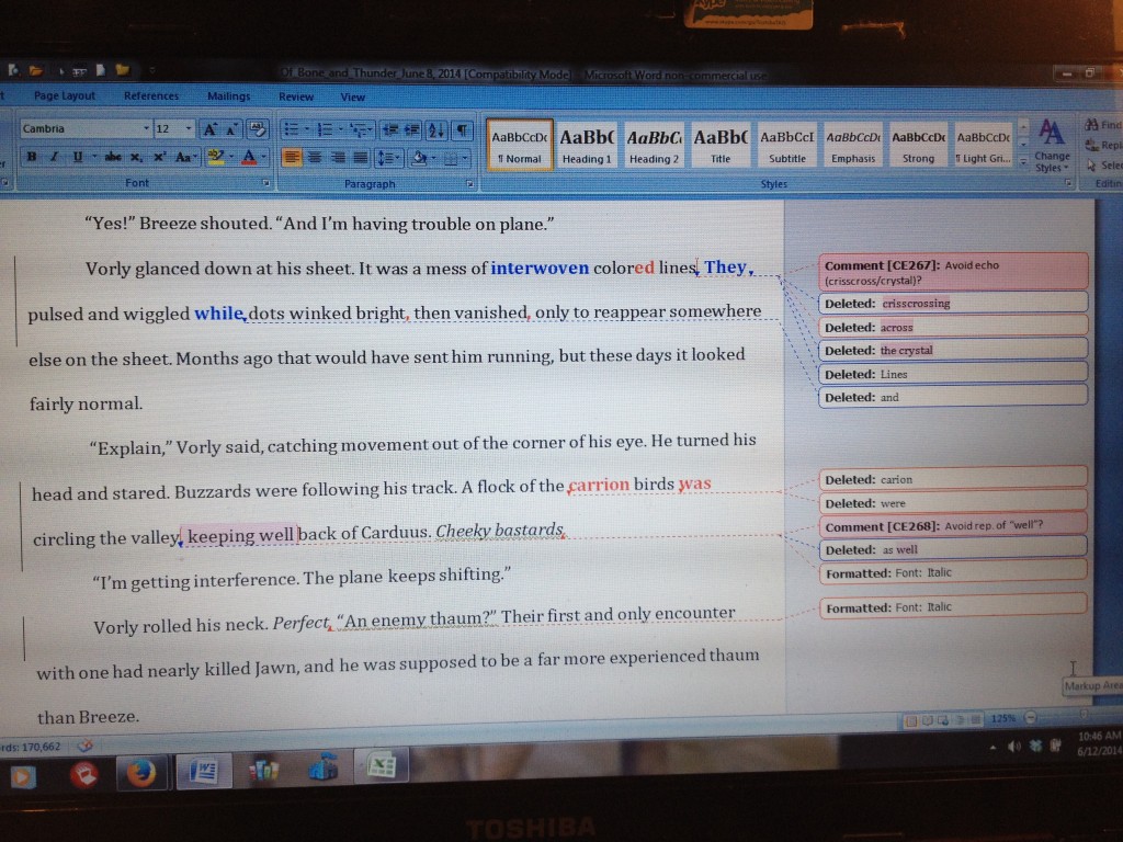 Here are a couple of screen shots of what the copy edited pages look like including my revisions in response. It’s quite easy to make global changes which is important when an author (like myself) spells names six different ways. Copy editors earn their money.